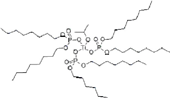 Product Name:isopropyl tri(dioctylphosphate)titanate CAS NO:65345-34-8 Molecular Formula:C51H109O13P3Ti Structural Formula: Technical Indexes: 1, Appearance,viscous liquid with creamy color 2, Density, 0.95 g/cm3 3, Flash point, °C, 105 4, Refractive indiex 1.4810 5, Decomposition temperature, °C, 260 Danger Sign: Safety term
